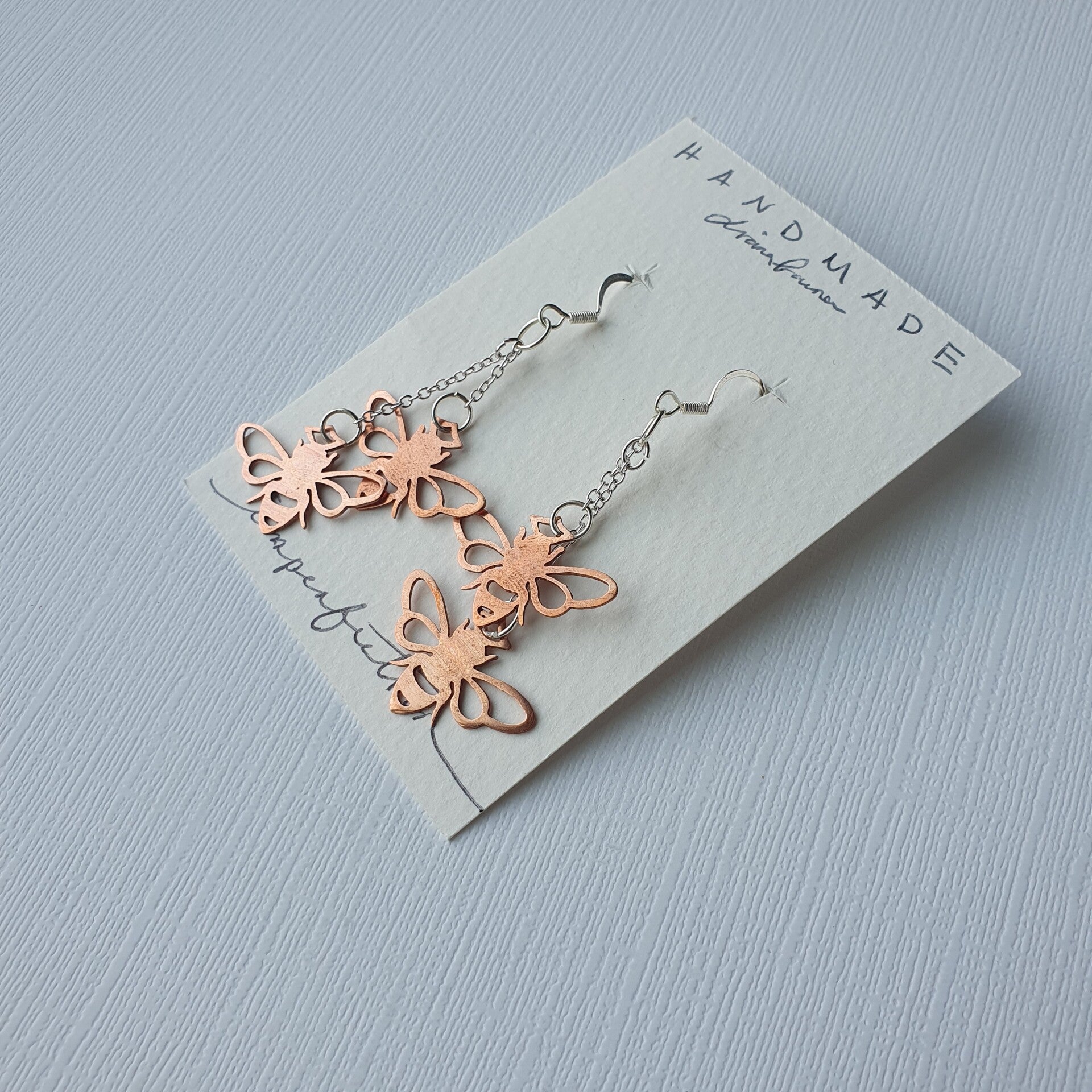 Hand crafter from copper, these earrings are perfect gifts for yourself or others! They are light weight and have a stirling silver coated hook, an easy comfortable long wear!