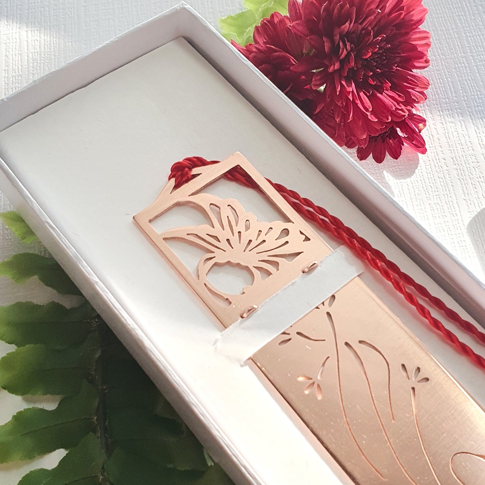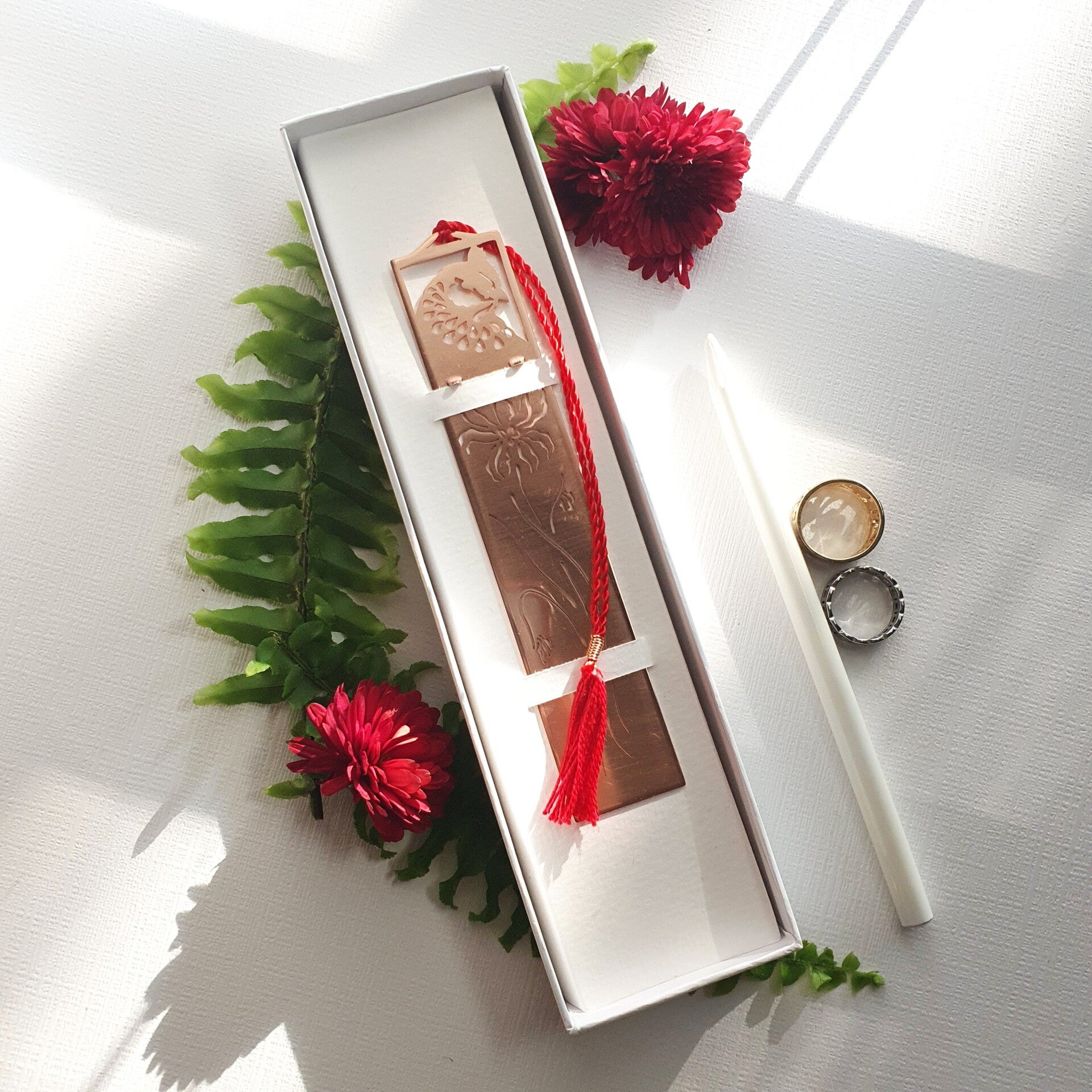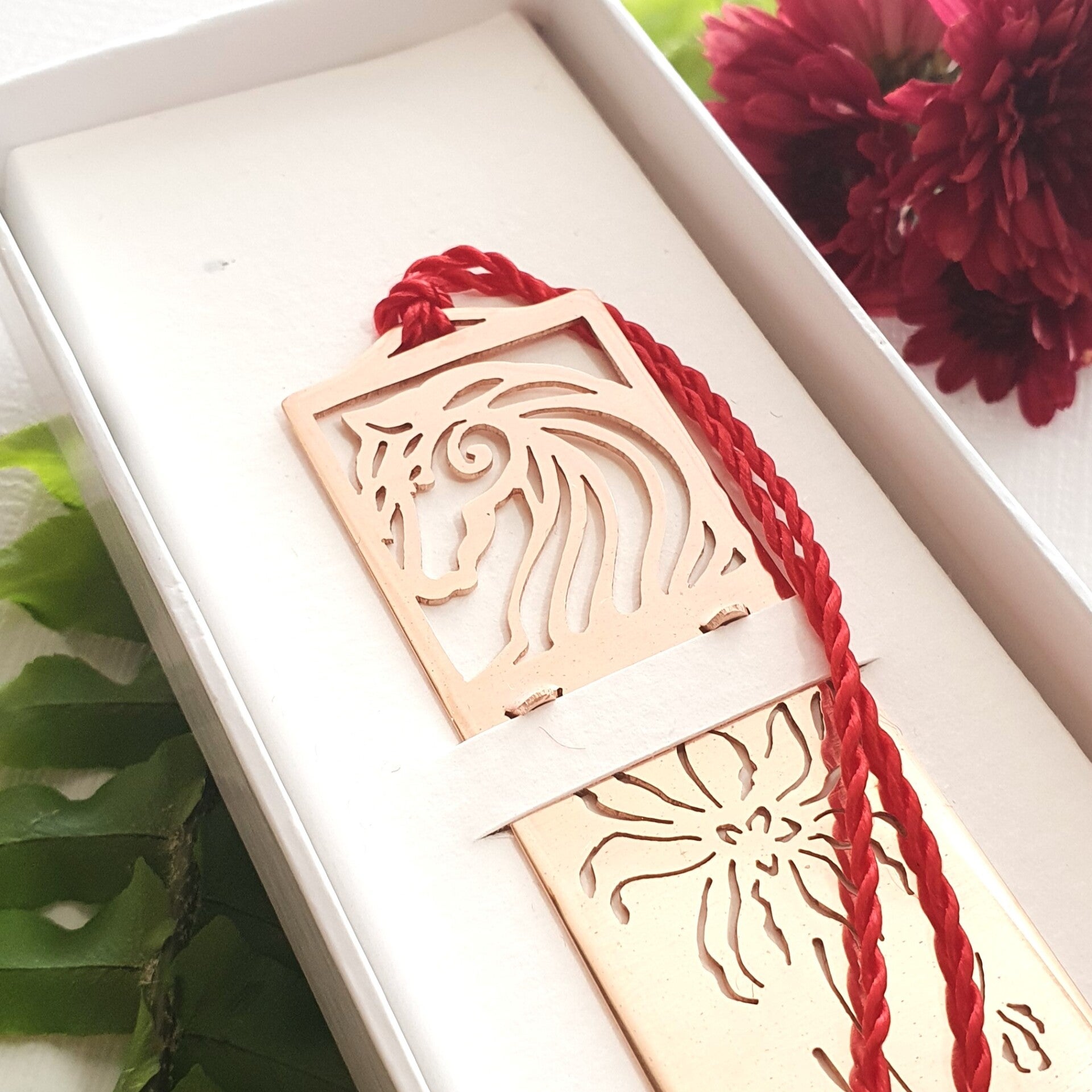 Crafted from copper, each bookmark is distinctive, changing its appearance based on its surroundings and the level of handling it receives. You may marvel at the beautiful transition from a lovely rose gold hue to shades of orange, red, brown, blue, and purple. A polishing pad is included for those who wish to restore the copper's original light pink shade, just keep in mind that some marks may remain, as your fingerprints can leave a lasting impression. But that is just the charm of copper.
